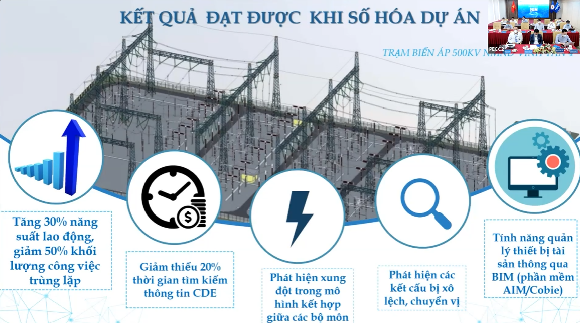 Chương trình Hội thảo BIM và Scan-To-BIM là cơ hội để PECC2 giới thiệu với khách hàng về dịch vụ mới nằm trong chiến lược chuyển đổi số của Công ty. Chương trình được tổ chức trực tuyến với sự tham dự của các thành viên HĐQT, Ban TGĐ, Lãnh đạo các đơn vị thành viên và Ban chức năng của EVNGENCO2.