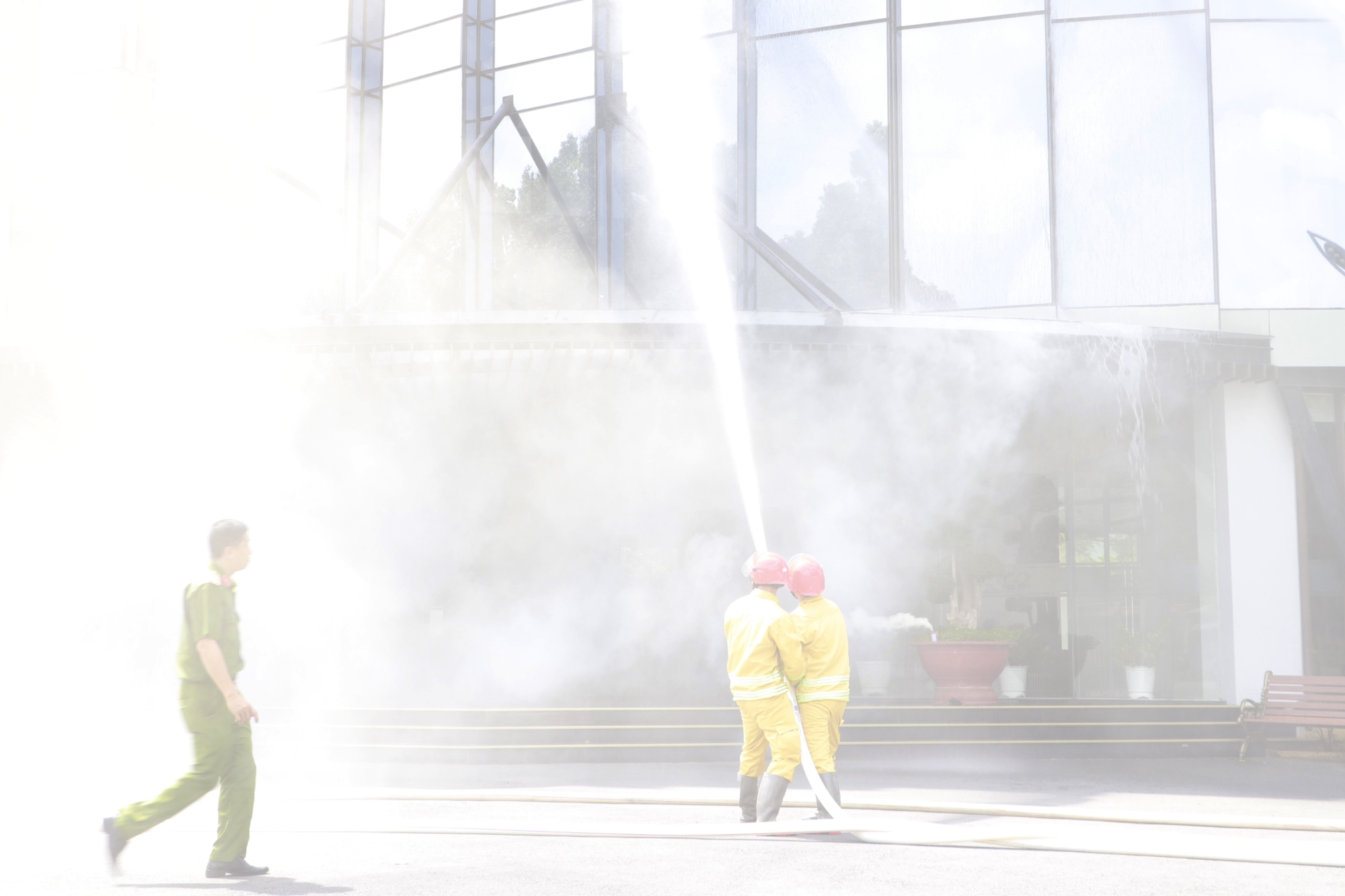 Tổ xung kích chữa cháy tiếp tục chia thành 02 nhóm: nhóm 1 sử dụng các loại bình chữa cháy xách tay trang bị tại công trình nhanh chóng tiếp cận khu vực giả định cháy, đồng loạt phun chất chữa cháy để khống chế và dập tắt đám cháy; nhóm 2 triển khai 03 đường vòi chữa cháy tại vị trí gần khu vực giả định, phun nước khống chế và dập tắt đám cháy.