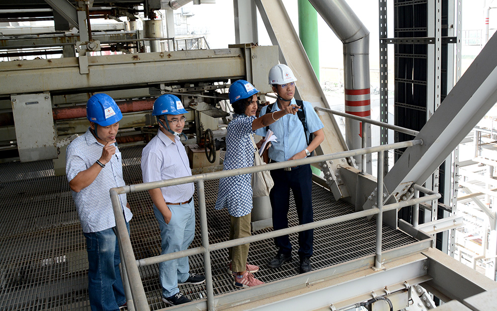 | Sáng cùng ngày, đoàn công tác đến thăm quan quy trình sản xuất điện của Nhà máy Nhiệt điện Nghi Sơn 1 (thuộc Tổng công ty Phát điện 1), tại huyện Tĩnh Gia, tỉnh Thanh Hóa. Với 2 tổ máy có tổng công suất 600 MW, Nhà máy sản xuất khoảng 3,6 tỷ kWh/năm cho hệ thống điện quốc gia. Nhà máy được đầu tư công nghệ lọc bụi tĩnh điện (ESP) với hiệu suất khử bụi lên đến 99,79%. Bên cạnh đó, 100% lượng tro bay đã được tiêu thụ hết. |