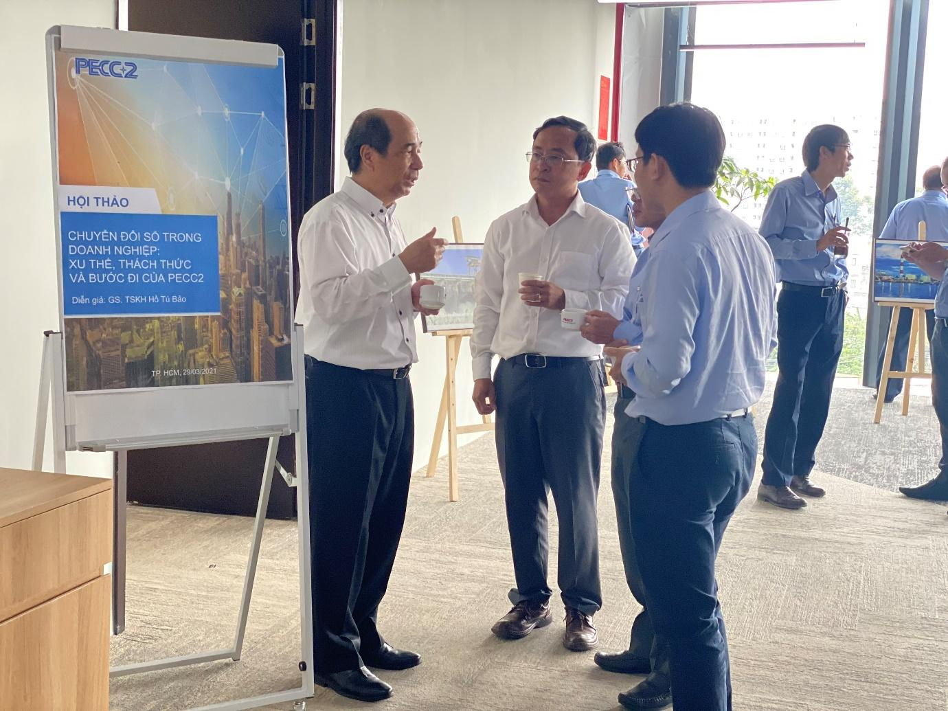 Tại PECC2, định hướng chuyển đổi số và phát triển năng lực số đang là một trong những ưu tiên hàng đầu, tạo nên lợi thế cạnh tranh của doanh nghiệp. Công ty đã triển khai nhiều hoạt động cụ thể nhằm hiện thực hóa mục tiêu này. Trong đó, mới đây nhất là việc tổ chức hội thảo: Chuyển đổi số trong doanh nghiệp: xu thế, thách thức và bước đi của PECC2 với diễn giả chính là Giáo sư, Tiến sĩ khoa học Hồ Tú Bảo. Hội thảo có sự tham gia của Lãnh đạo Công ty, lãnh đạo các đơn vị, phòng ban của PECC2.