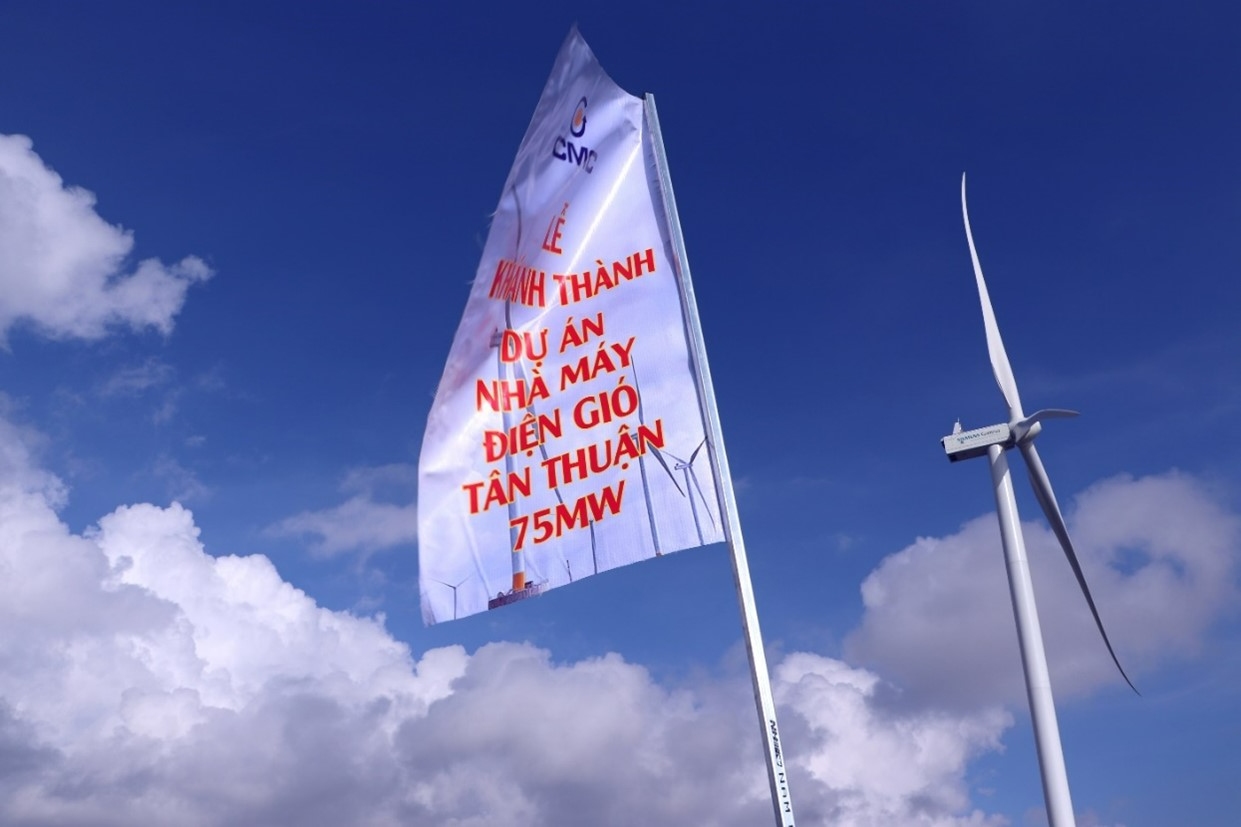 Nghi thức cắt băng khánh thành Dự án Nhà máy điện gió Tân Thuận 75MW GĐ1 & GĐ2.
