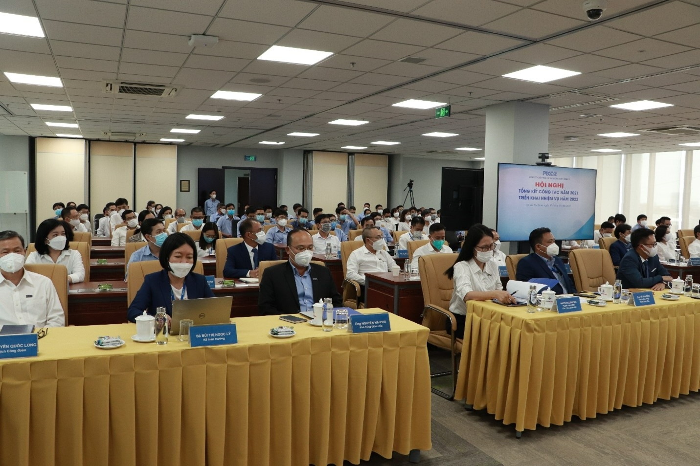 Năm 2021, mặc dù chịu nhiều ảnh hưởng từ làn sóng dịch COVID-19 lần thứ 4, nhưng với sự nỗ lực và quyết tâm cao độ của Lãnh đạo và tập thể người lao động, PECC2 tiếp tục hoàn thành được nhiều mục tiêu kế hoạch đã đề ra. Để đánh giá các kết quả công tác trong năm vừa qua, và triển khai kế hoạch, nhiệm vụ cho năm mới, cũng như tầm nhìn cho những năm tiếp theo, PECC2 tổ chức Hội nghị Tổng kết Công tác năm 2021 và Triển khai nhiệm vụ năm 2022 tại Tòa nhà PECC2 Innovation Hub ngày 30/12/2021 với sự tham dự của Lãnh đạo Công ty, lãnh đạo các đơn vị, các phòng ban, chi nhánh của công ty cùng toàn thể người lao động tham dự từ xa thông qua cầu truyền hình trực tuyến.