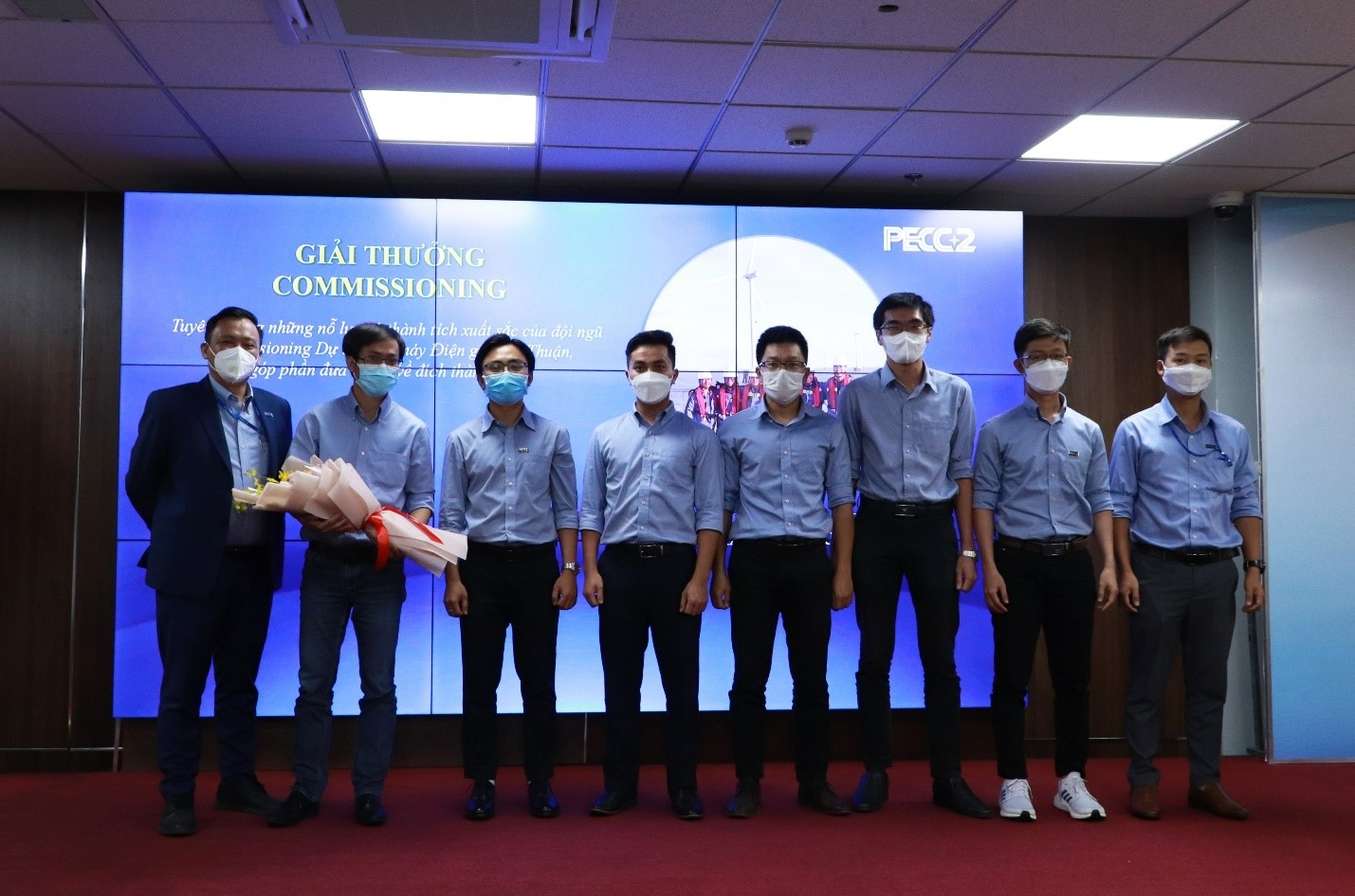 Ông Võ Văn Bình trao hoa tuyên dương nhóm Commissioning đạt thành tích xuất sắc, góp phần đưa Dự án NMĐG Tân Thuận 75MW hoàn thành mục tiêu đúng tiến độ