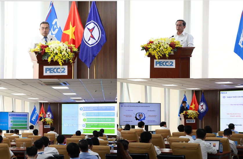 Bốn báo cáo chuyên đề với các nội dung: Quy hoạch Điện VIII và thị trường công việc PECC2; Chuyển đổi số - Xu thế và sự cần thiết đối với PECC2; BIM và dịch vụ BIM của PECC2; Công tác phát triển nguồn nhân lực.