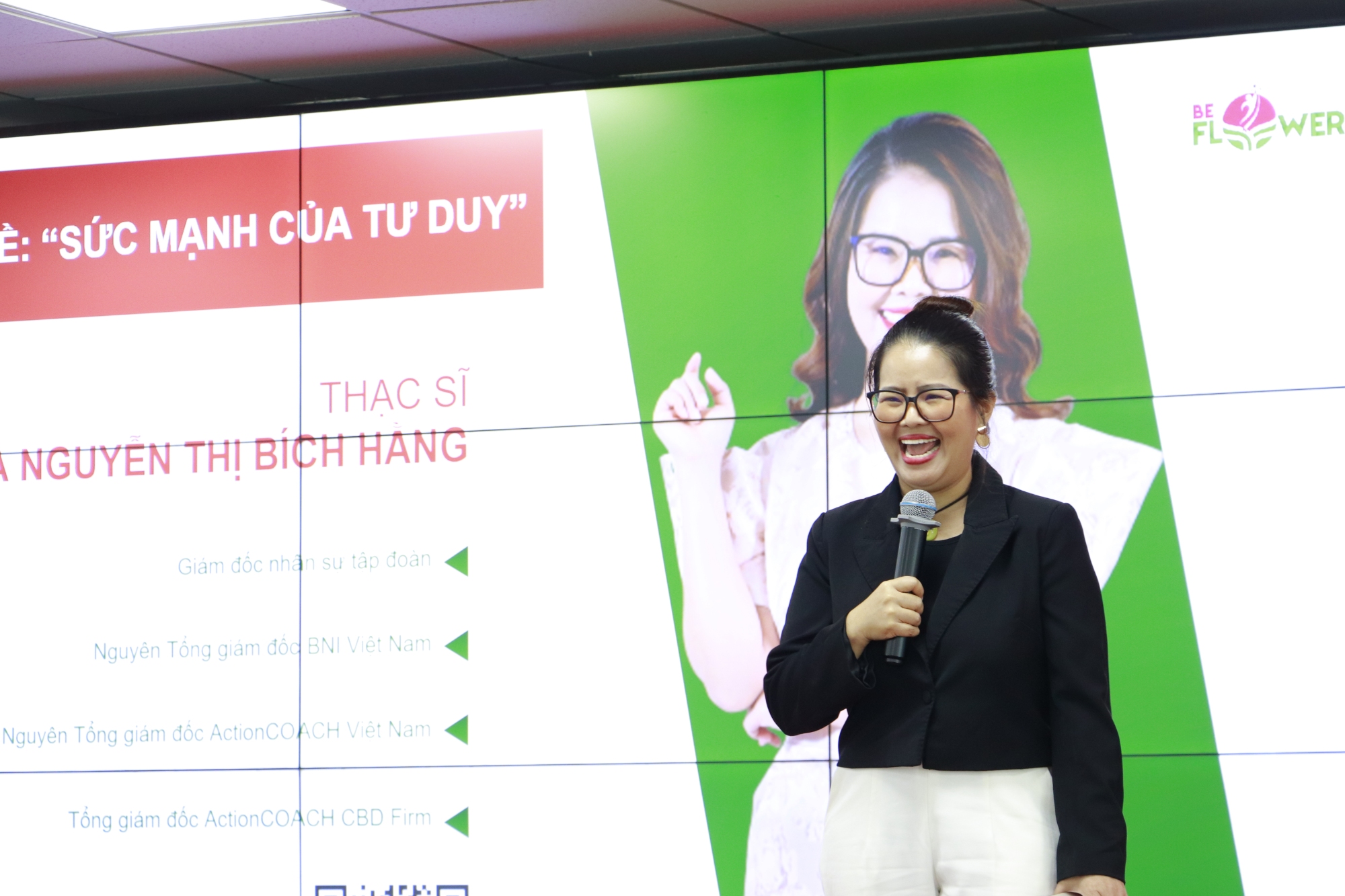 Chương trình bắt đầu với diễn đàn chia sẻ đầy thú vị xoay quanh chủ đề: "Sức mạnh của tư duy" của Thạc sĩ Thạc sĩ Nguyễn Thị Bích Hằng - Giám đốc Nhân sự Tập đoàn, Nguyên Tổng Giám đốc BNI Việt Nam, Nguyên Tổng Giám đốc ActionCOACH Việt Nam, Tổng Giám đốc ActionCOACH CBD Firm. Người lao động đã có cơ hội lắng nghe những chia sẻ thiết thực về tầm ảnh hưởng của tư duy và thói quen cốt lõi kiến lõi thành công, tầm quan trọng của việc thiết lập mục tiêu. Thông qua buổi tọa đàm, người lao động, đặc biệt là người lao động nữ đã có thể hiểu về cốt lõi và sự ảnh hưởng của sức mạnh tư duy, từ đó có thể làm chủ việc thành công và nắm bắt cách thức vận hành cuộc sống một cách hiệu quả hơn.