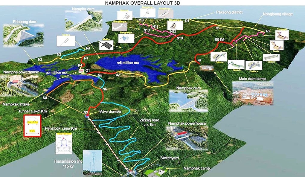 Bố cục tổng thể dự án thủy điện Nam Phak.